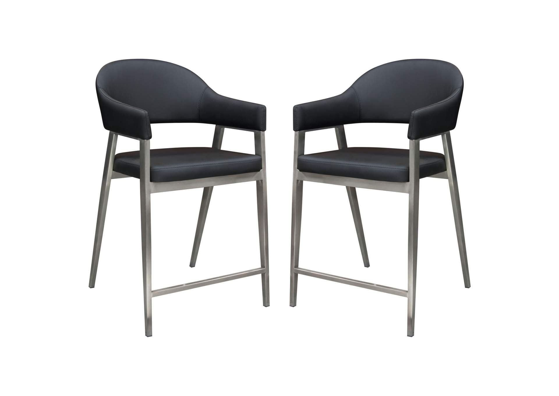 Adele Set of Two Counter Height Chairs in Black Leatherette w/ Brushed Stainless Steel Leg by Diamond Sofa