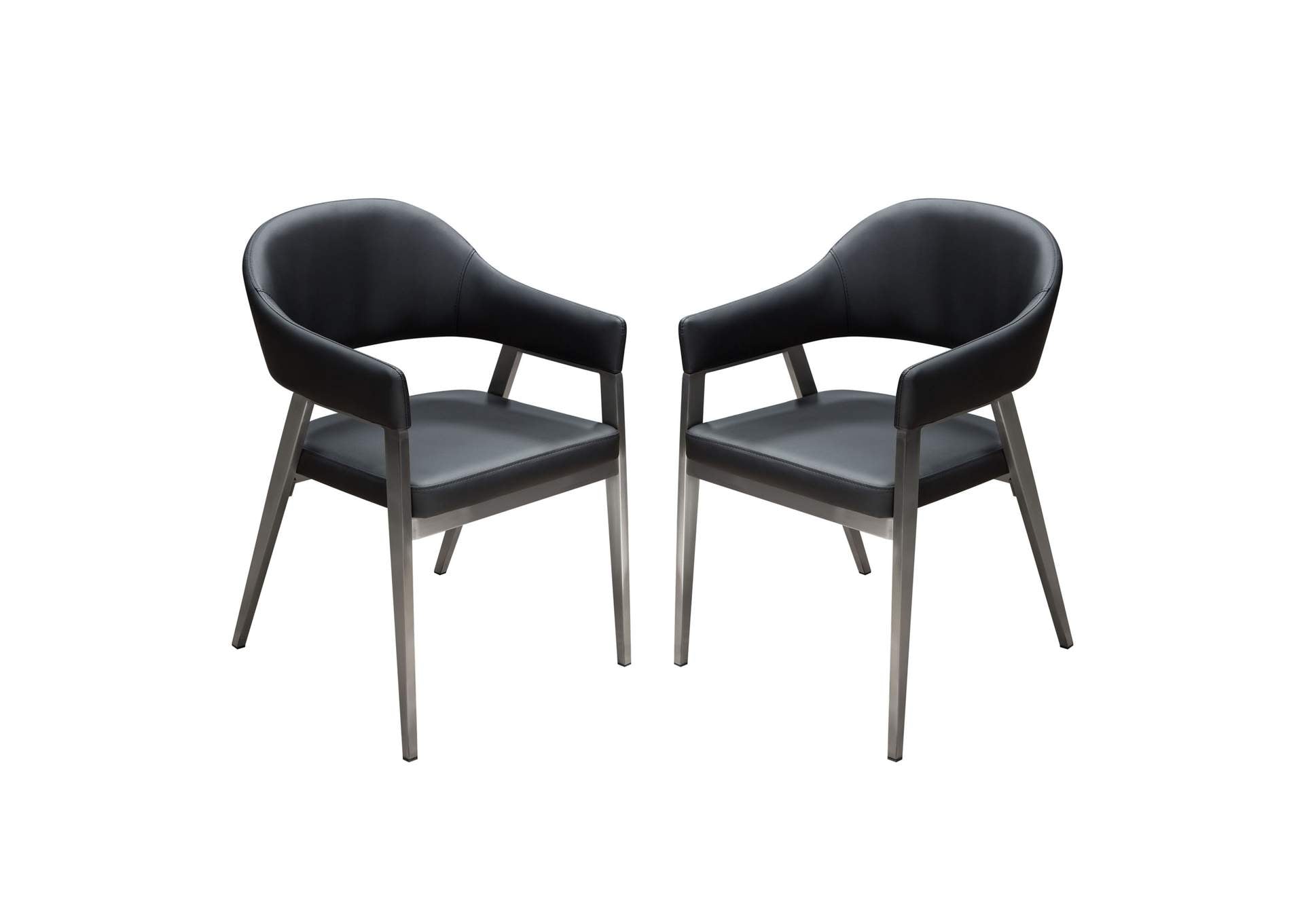 Adele Set of Two Dining/Accent Chairs in Black Leatherette w/ Brushed Stainless Steel Leg by Diamond Sofa