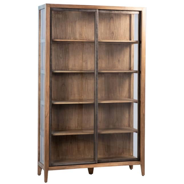 Material: Mindi Wood Veneer with Glass Doors and Metal Accents