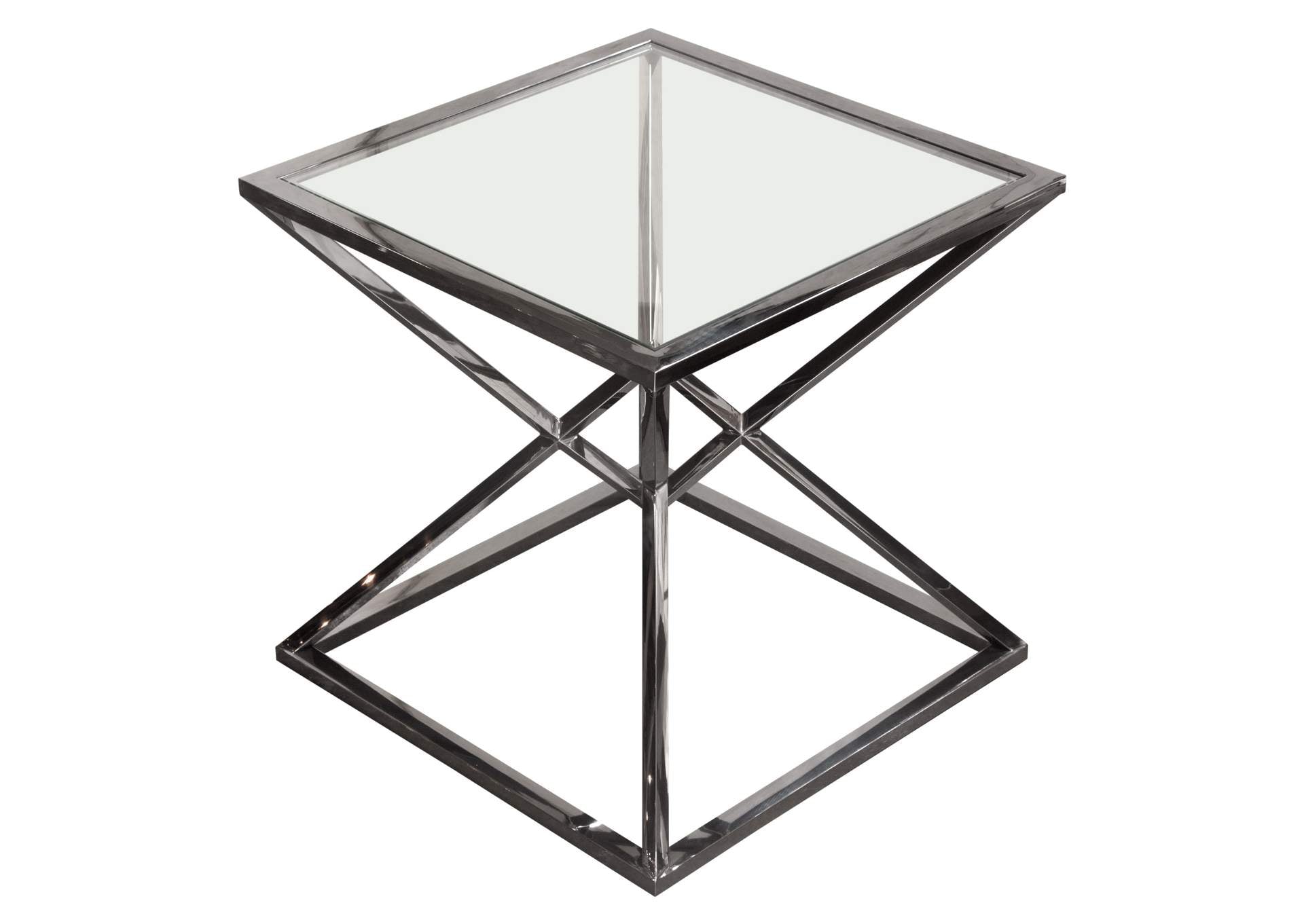 Aria Square Stainless Steel End Table w/ Polished Black Finish Base & Clear, Tempered Glass Top by Diamond Sofa