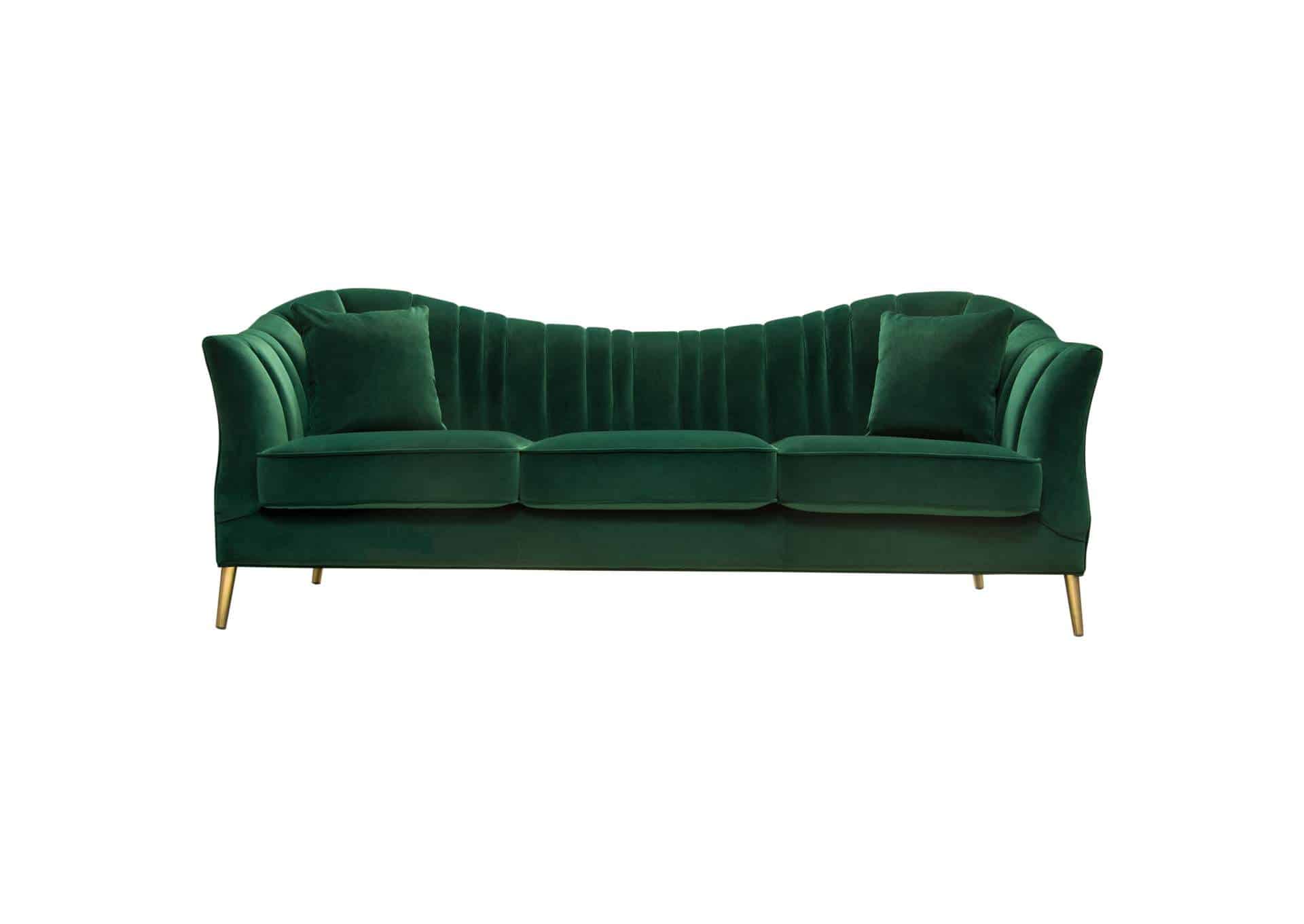 Ava Sofa In Emerald Green Velvet W/ Gold Leg