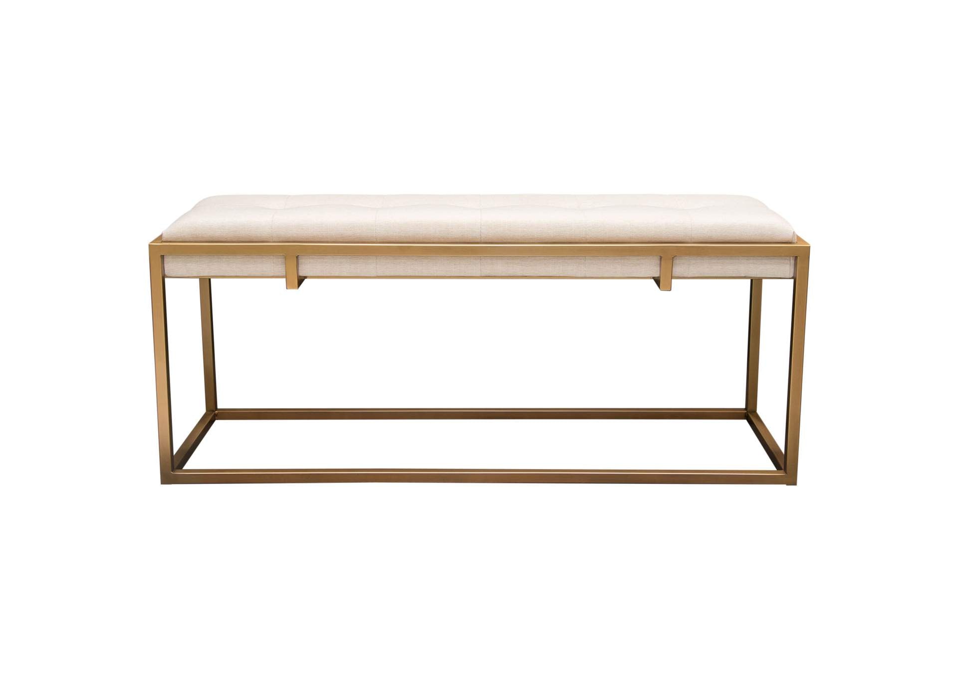 Babylon Large Bench Ottoman w/ Brushed Gold Frame & Padded Seat in Sand Linen by Diamond Sofa