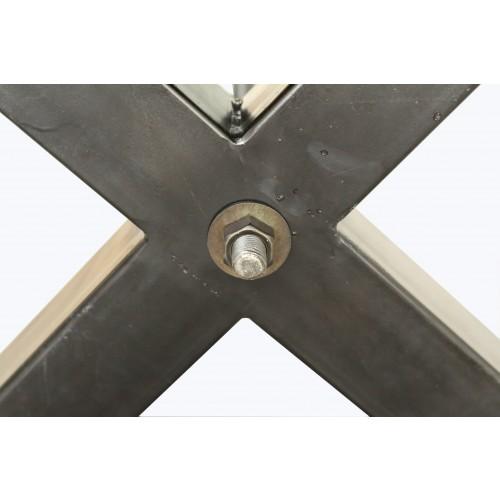 This beautiful dining table is a perfect mixture of wood and metal. The metal legs with the rustic detail connecting them makes this a truly unique piece which is perfect for any space.