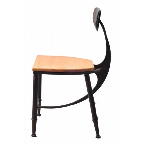 Sold in Sets of 2- This wood and metal dining chair has a beautiful curved back and a unique spine that runs from the backrest to the bottom of the chair. Seat height is 18". No assembly required.