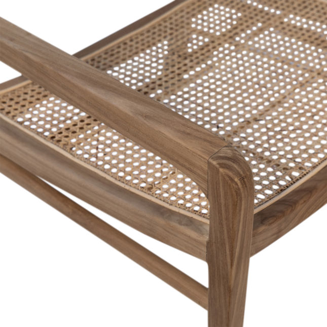 Clean lines and solid teak wood construction finished with a meticulously crafted handwoven rattan seat and back. This occasional chair will bring some serious style to your space. Works beautifully as a living room lounge chair, sculptural statement chair, or as a fun dining chair. Style it as a standalone piece or in a pair.