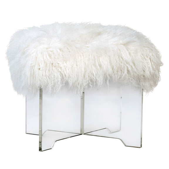Dovetail Copley Ottoman. Uniquely designed to add glamorous style to any area of your home. With its elegant natural white faux mohair seat and transparent acrylic base, this ottoman instantly illuminates any room. This 20x21" ottoman will make a beautiful first impression in your living room or bedroom while providing superior comfort and softness.