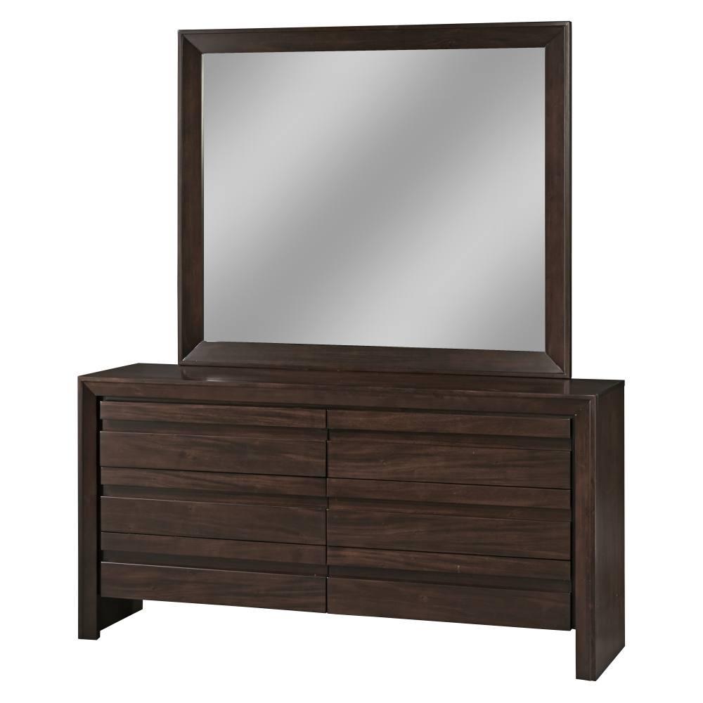 Bring the beauty and structure of clean architecture to your bedroom with the Element collection. Thick miter-jointed outer posts are the focus of this group, whose streamlined aesthetic stretches from the top panels all the way to the floor. Tropical Mahogany solid wood and Mahogany wood veneers are finished in a dark chocolate brown with tones ranging from dark to golden brown and burgundy.