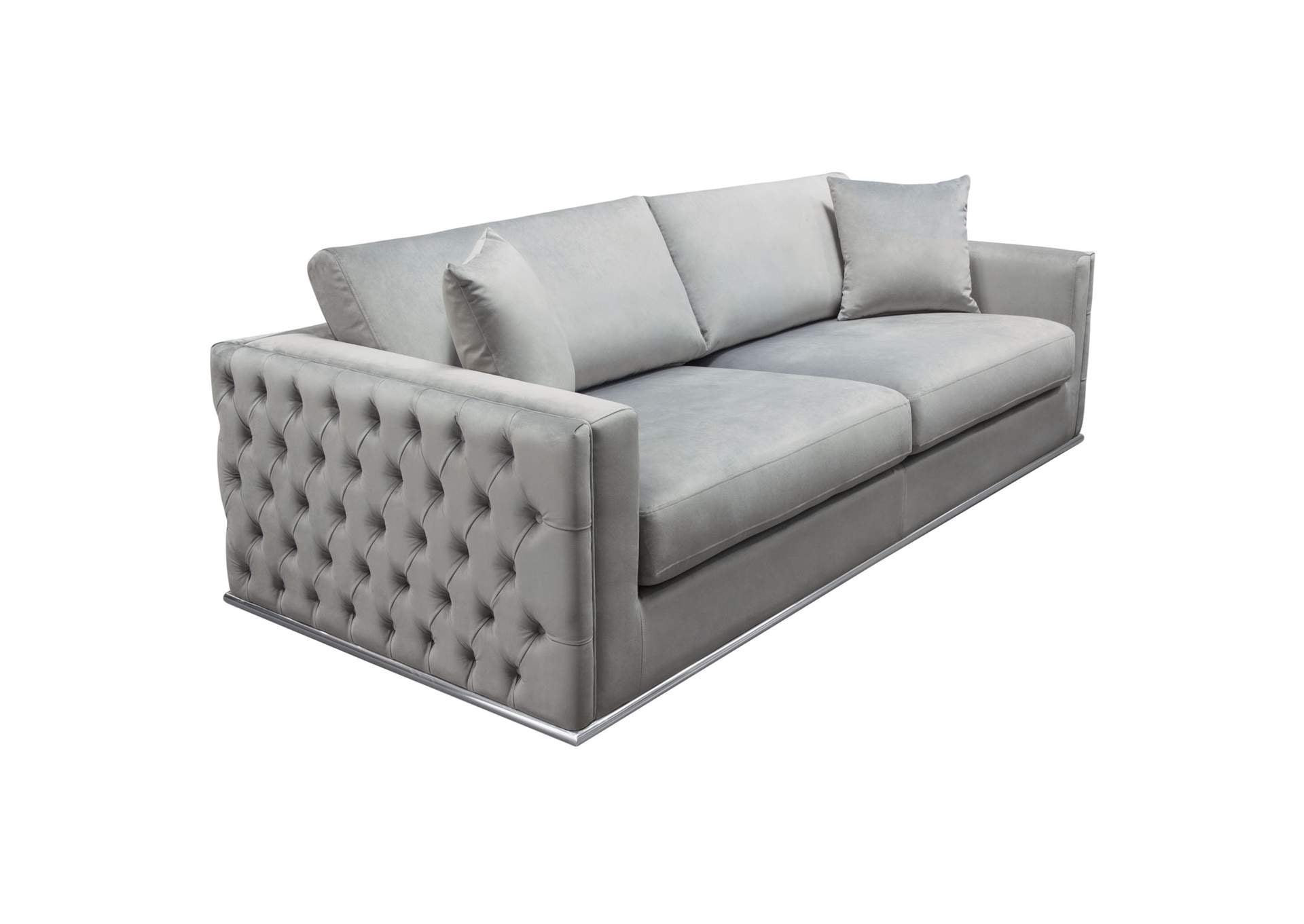 Envy Sofa in Platinum Grey Velvet with Tufted Outside Detail and Silver Metal Trim by Diamond Sofa