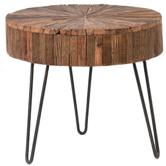 Dovetail Guidan Side Table. Material: Reclaimed Acacia Wood Top and Iron Legs