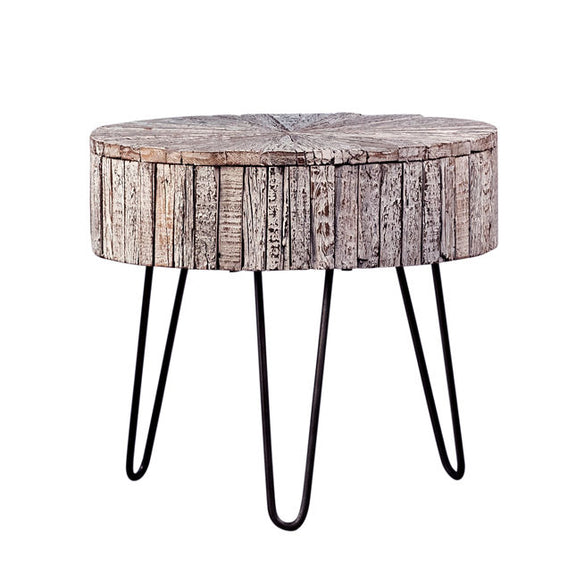 Dovetail Guidan Side Table. Material: Reclaimed Acacia Wood Top and Iron Legs