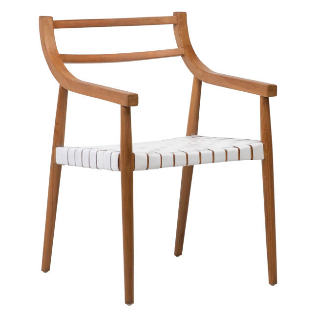 Material: Full Grain Leather Upholstery Woven on a Teak Wood Frame