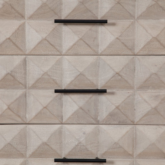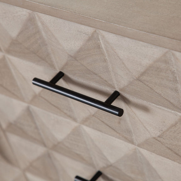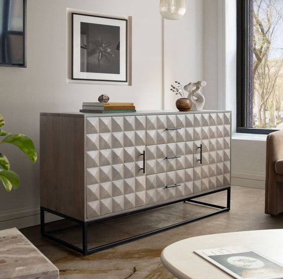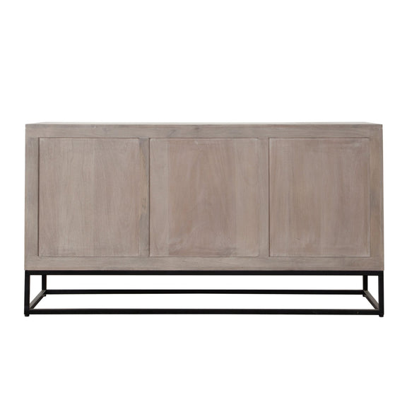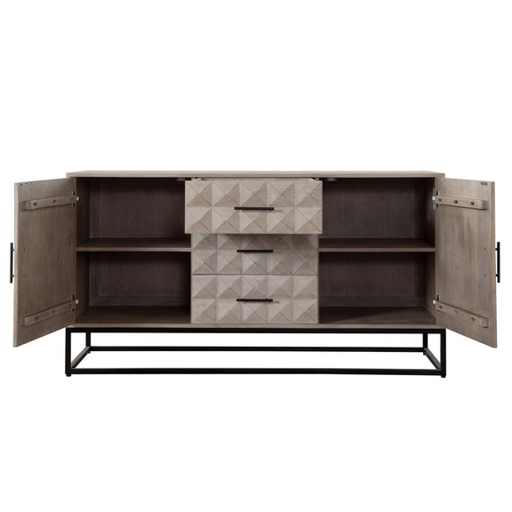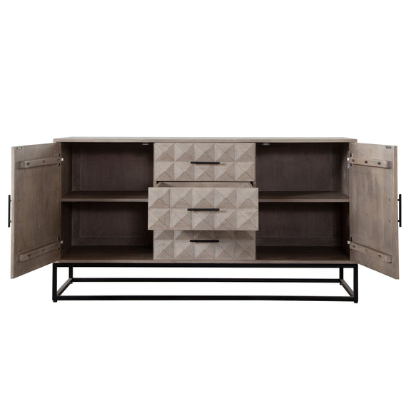 The Madera 3-Drawer / 2-Door Dresser/Sideboard by Diamond Sofa features an all wood presentation in a soft and subtle Ashe finish atop a black powder coated metal base. Metal Drawer Glides promote ease of use. Intricately carved drawer fronts provide depth and aesthetic appeal to your room's decor. Four Interior shelves promote ample free storage opportunities to promote the clutter free lifestyle you seek.