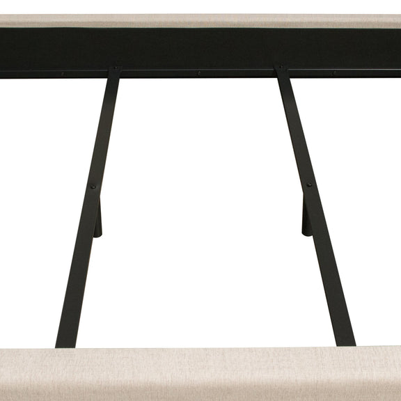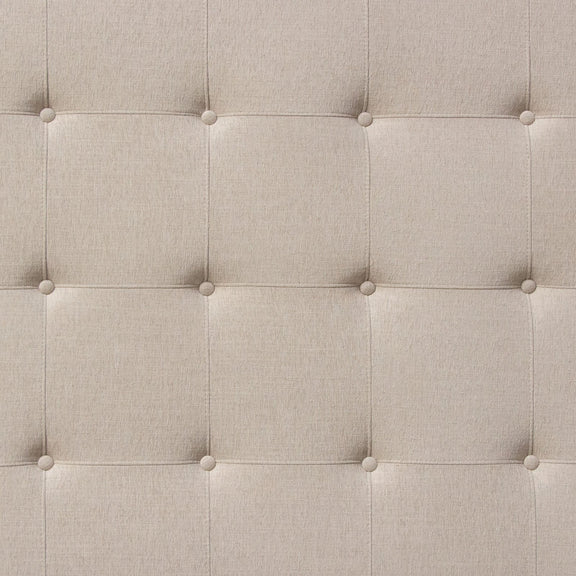 The Madison Ave Bed by Diamond Sofa is a hand crafted upholstered bed standing 60 inches tall. The 12 inch frame includes four slats with center supports added into the cleats for structural integrity. With its tufted headboard, tapered wing accents and wood feet finished in a rich medium walnut finish providing the backdrop for the Sand Polyester cover - creating this stylish addition to any bedroom's decor. Bed is available in Queen & Eastern King sizes. Foundation or Box Spring is required.