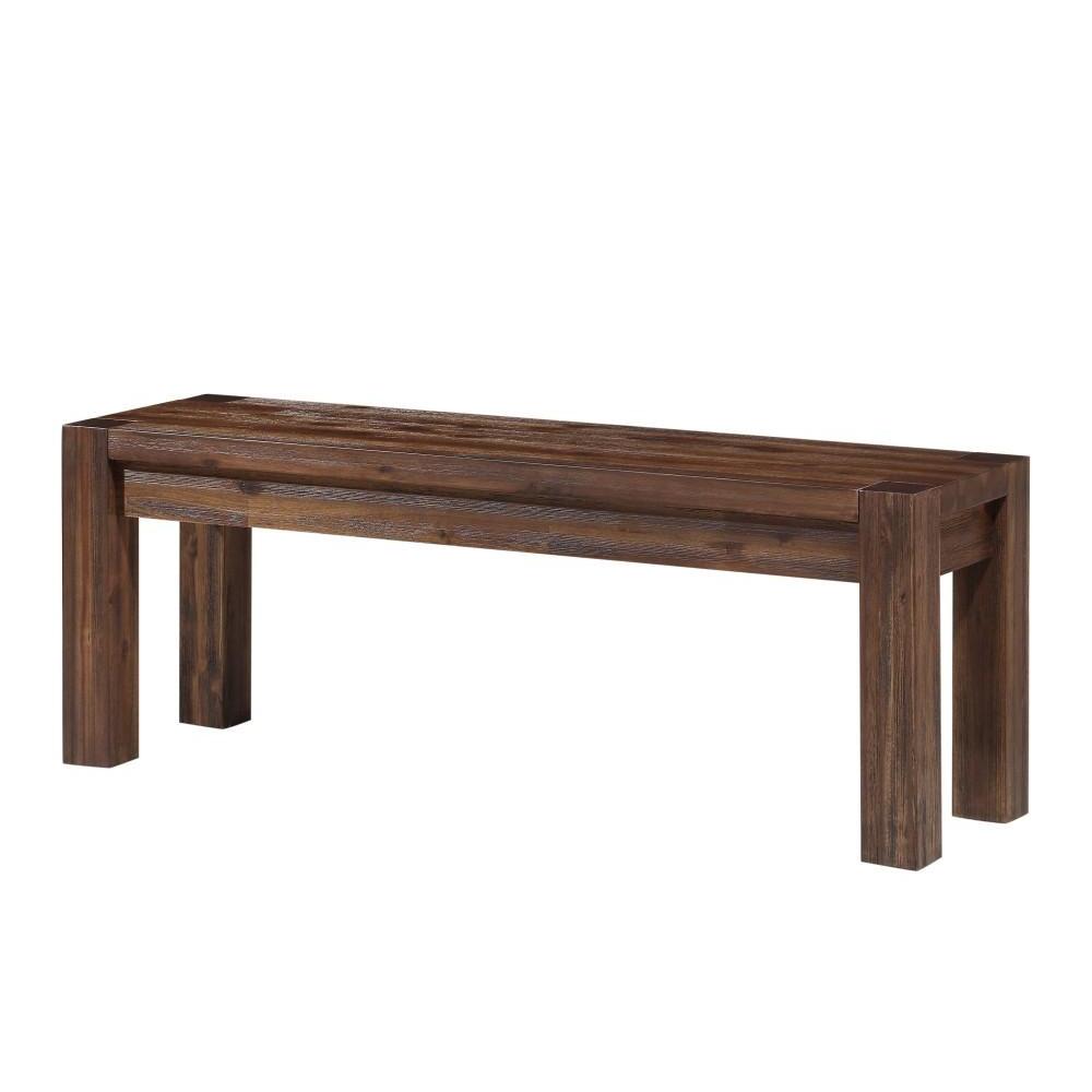 The Meadow collection is rugged durability and contemporary styling defined. Crafted from solid Acacia, its sleek lines showcase naturally occurring knot, grain and color variations inherent to the timber. Rustic wire brushing and a heavily glazed Brick Brown finish result in a perfect balance between modern and rustic.