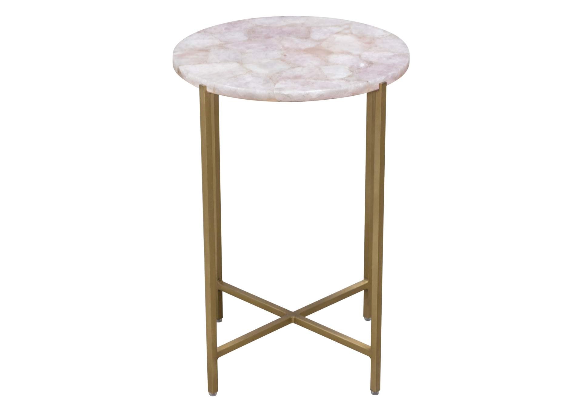 Mika Round Accent Table w/ Rose Quartz Top w/ Brass Base by Diamond Sofa