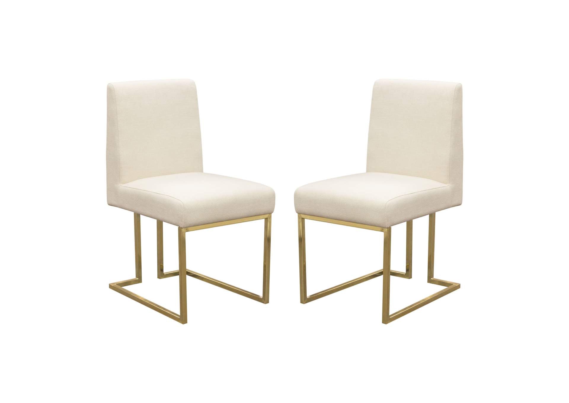 Set of (2) Skyline Dining Chairs in Cream Fabric w/ Polished Gold Metal Frame by Diamond Sofa