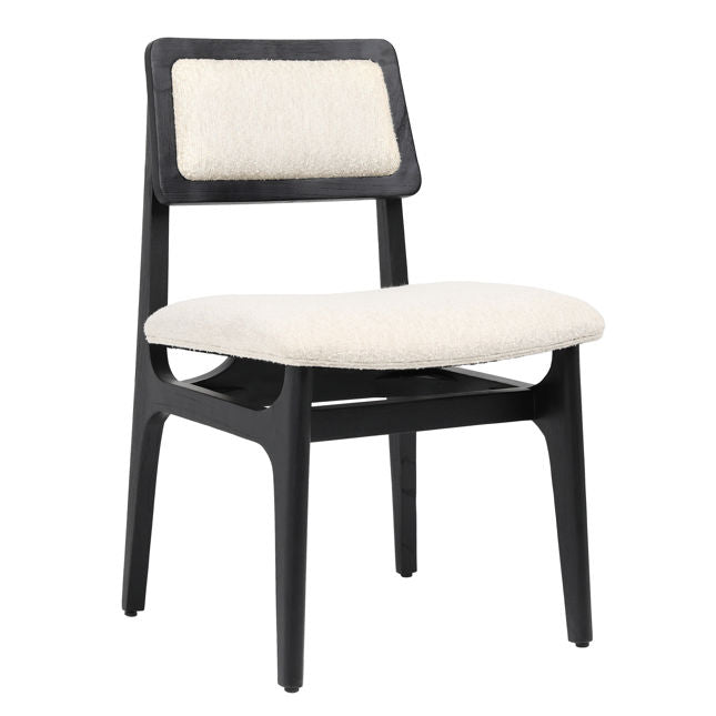 Finish: Black Wood Finish and Off White Boucle Upholstery