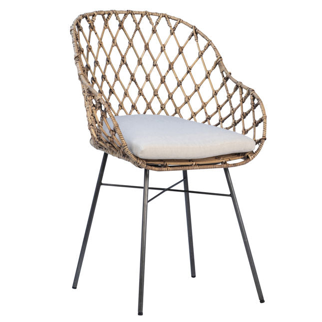 Material: Rattan, Iron Frame and Linen Cushion Seat