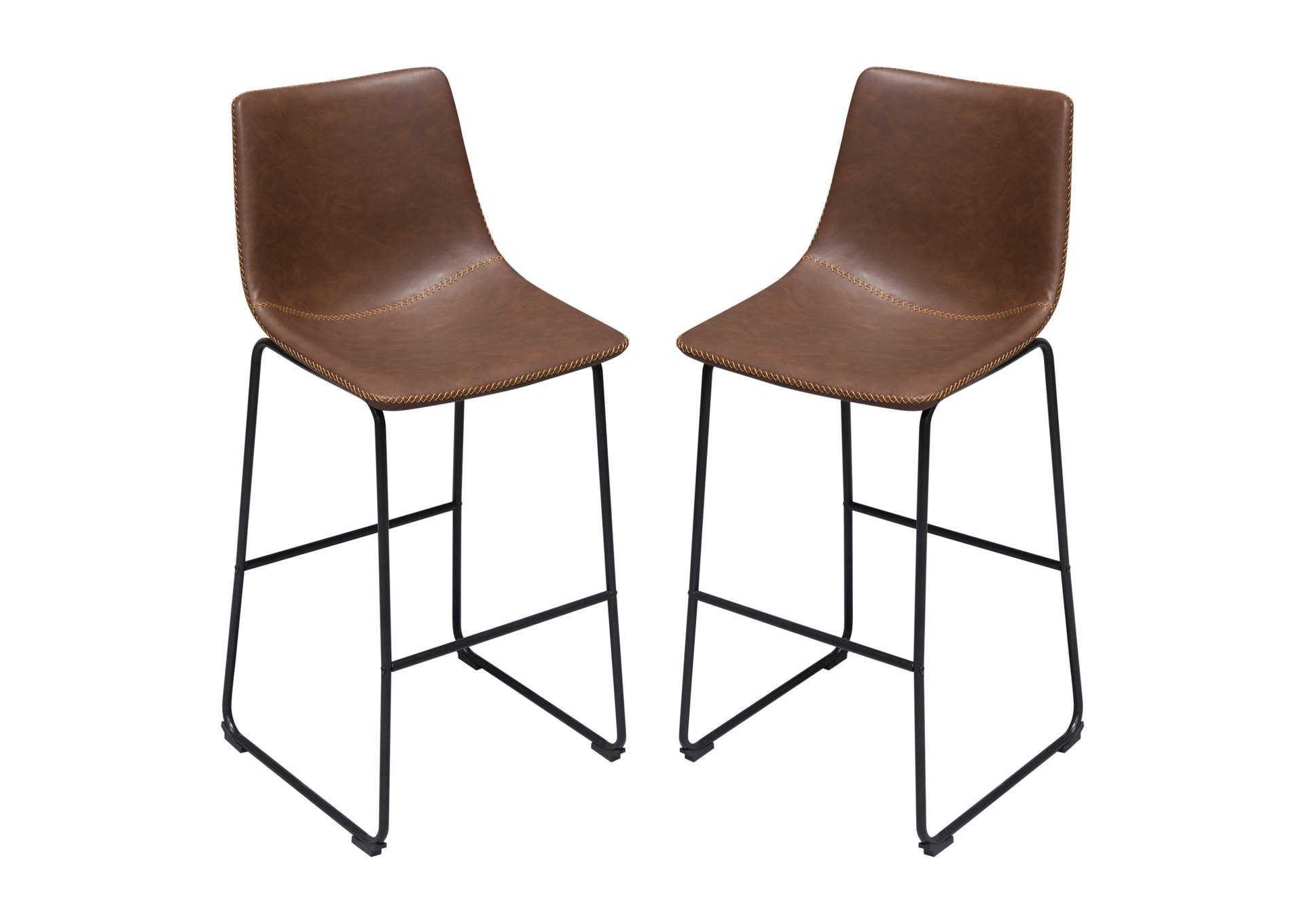 Theo Set of (2) Bar Height Chairs in Chocolate Leatherette w/ Black Metal Base by Diamond Sofa