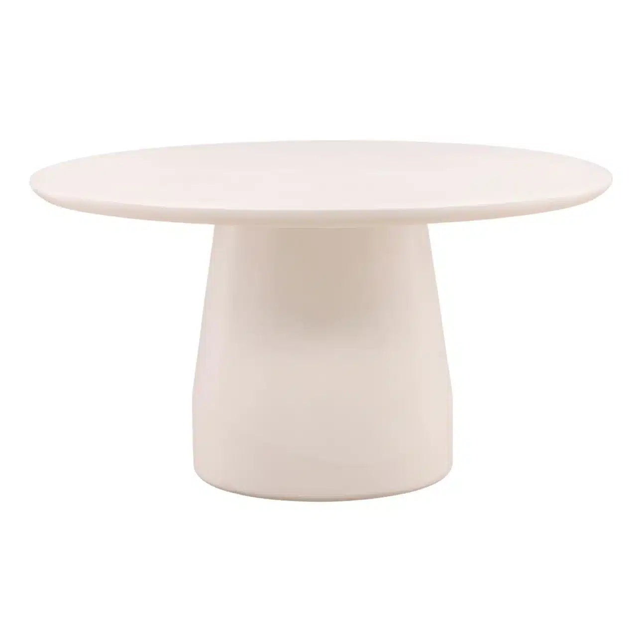 Sleek and sculptural, this modern round dining table brings effortless sophistication to any dining space. Featuring a smooth, matte ivory finish, the table is crafted with a minimalist design that emphasizes clean lines and soft curves. Its bold pedestal base tapers gently upward to support a perfectly round tabletop, creating a balanced and contemporary silhouette. Ideal for small gatherings or intimate meals both inside and outside, this table is a striking centerpiece that complements modern, Scandinavian, or minimalist interiors with ease.