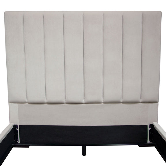 The Venus Bed by Diamond Sofa offers a refreshingly chic and sophisticated addition to your bedroom décor. The Venus bed features a 59" headboard with vertical channel tufted design and matching 27" footboard. Wrapped in a plush velvet cover, it is soft to the touch and easy on the eyes in Light Grey Velvet finish to add an regal elegance to its surroundings. Foundation or Box Spring is required.
