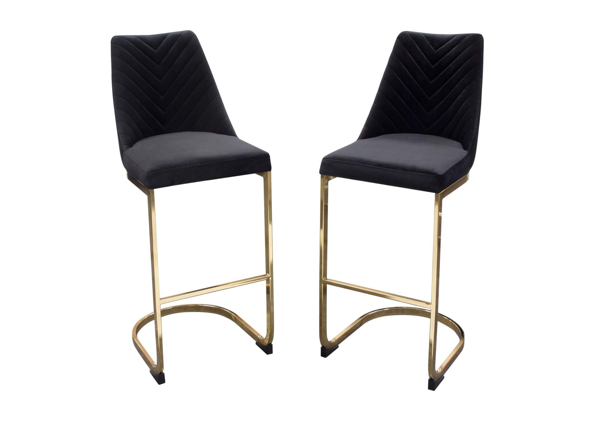Vogue Set of (2) Bar Height Chairs in Black Velvet with Polished Gold Metal Base by Diamond Sofa