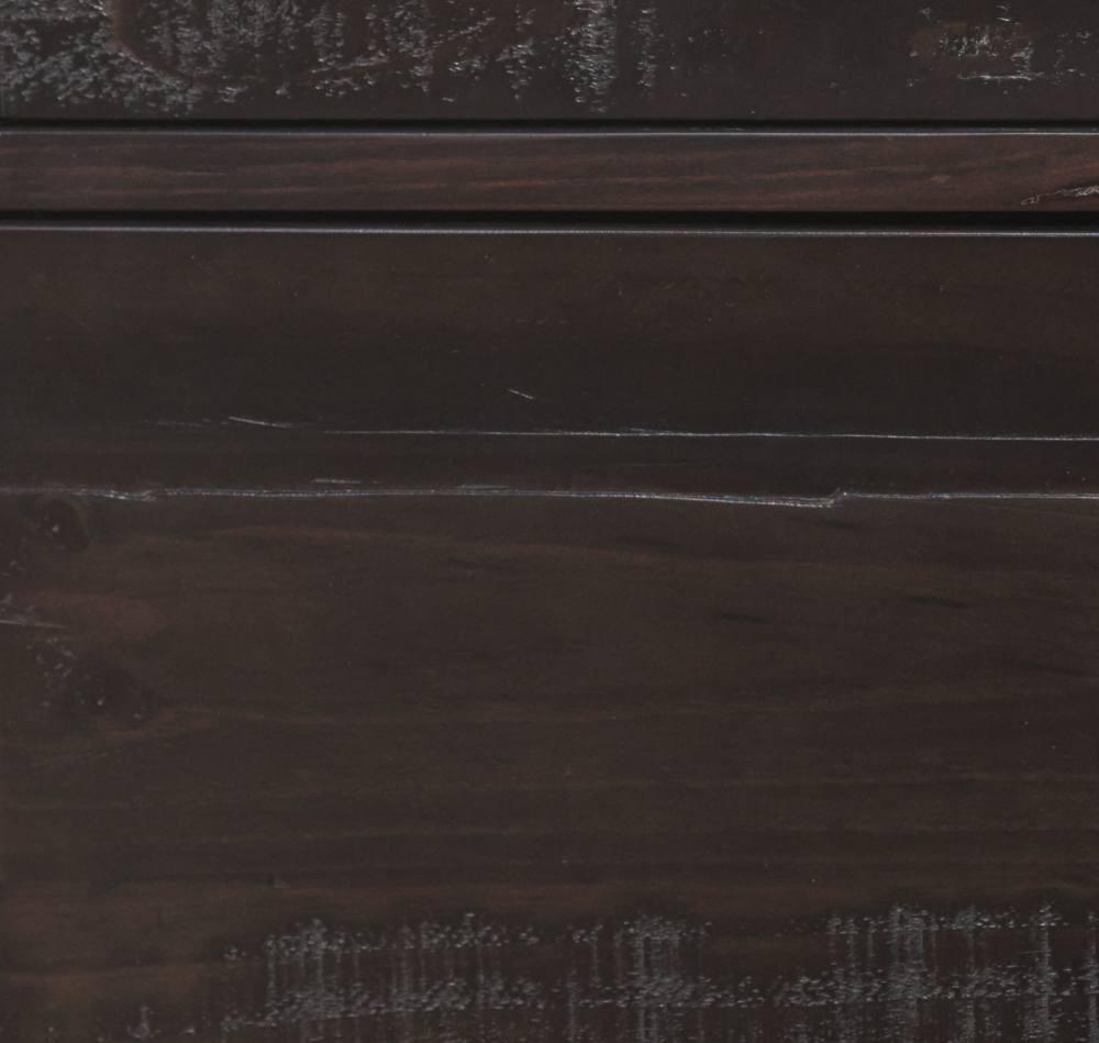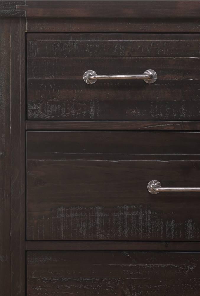 The Yosemite collection recreates the improvised, utilitarian look of early 20th century factory furniture. Crafted entirely from solid wood, this collection utilizes mortise and tenon frames, tongue and groove tops, and frame and panel sides for strength and durability. Roughhewn planks bear the characteristic saw marks, dents, pits, and random knots of logs milled on the steam powered circular and sash saws of the era. Finally, a rustic black pine finish balances transparency and opacity to showcase imperfections inherent in the timber.