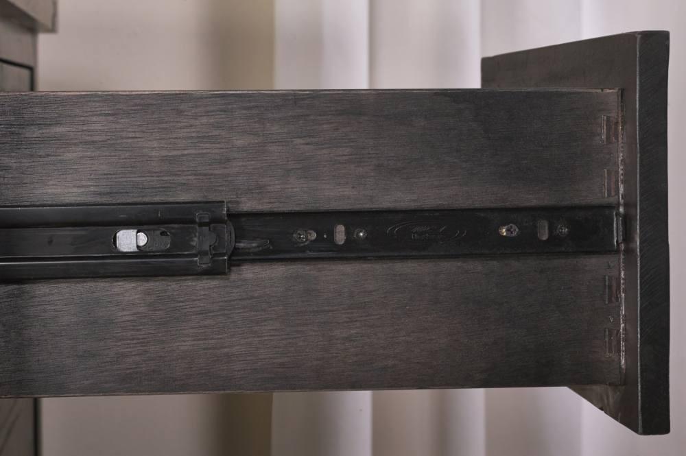 - Sanded and stained hardwood drawer boxes with English dovetail corners.