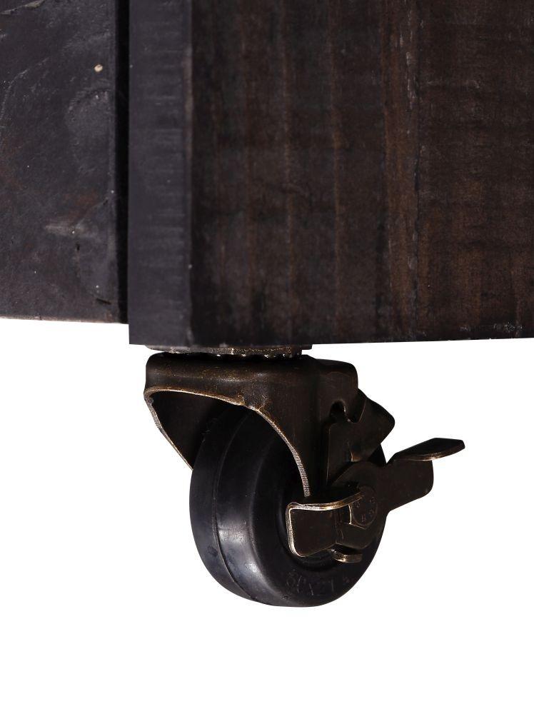The Yosemite collection recreates the improvised, utilitarian look of early 20th century factory furniture. Rough-hewn planks crafted entirely from solid pine bear the characteristic saw marks, dents, pits, and random knots of logs milled on the steam-powered circular and sash saws of the era. A rustic black pine finish balances transparency and opacity to showcase these natural imperfections.
