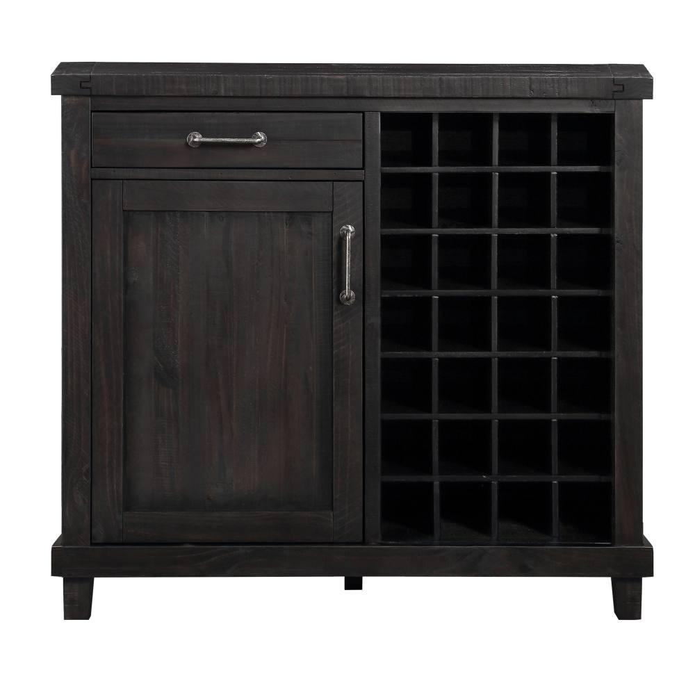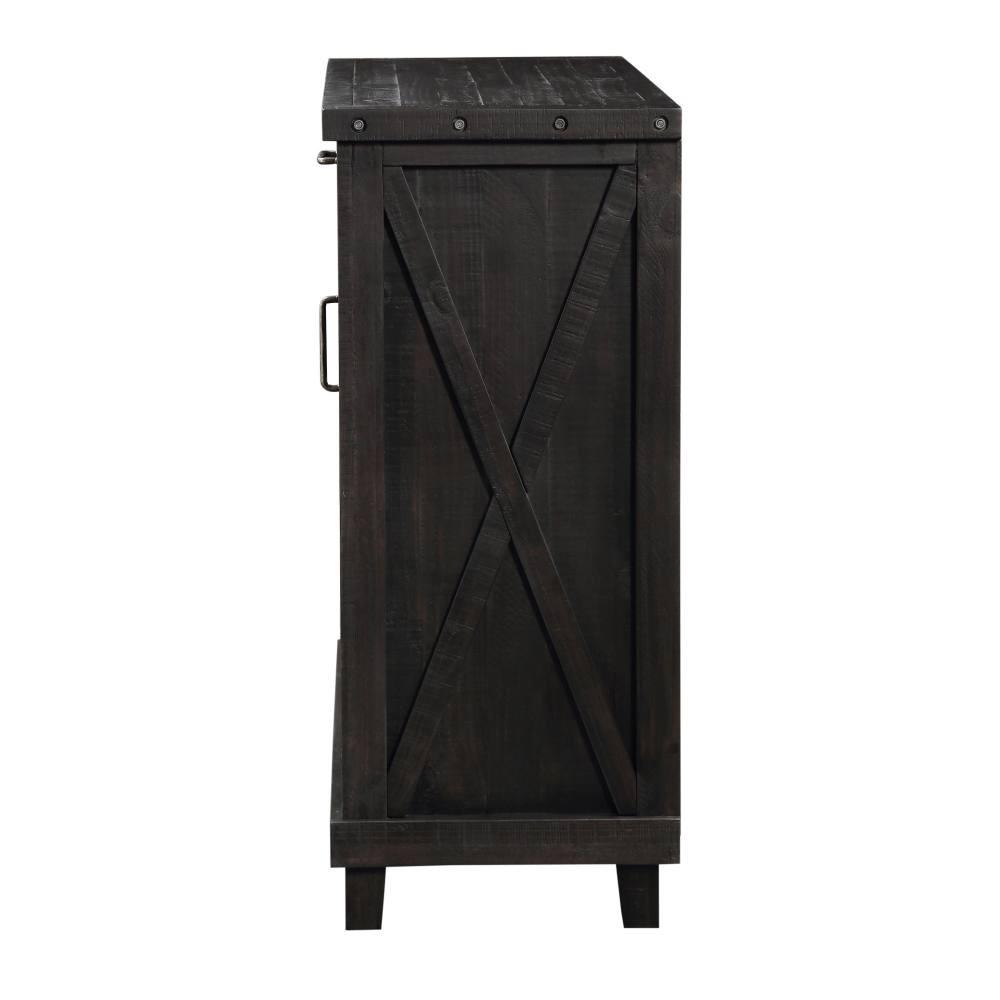 The Yosemite dining collection recreates the improvised, utilitarian look of early 20th century factory furniture. Rough-hewn planks crafted entirely from solid pine bear the characteristic saw marks, dents, pits, and random knots of logs milled on the steam-powered circular and sash saws of the era. A rustic black pine finish balances transparency and opacity to showcase these natural imperfections.